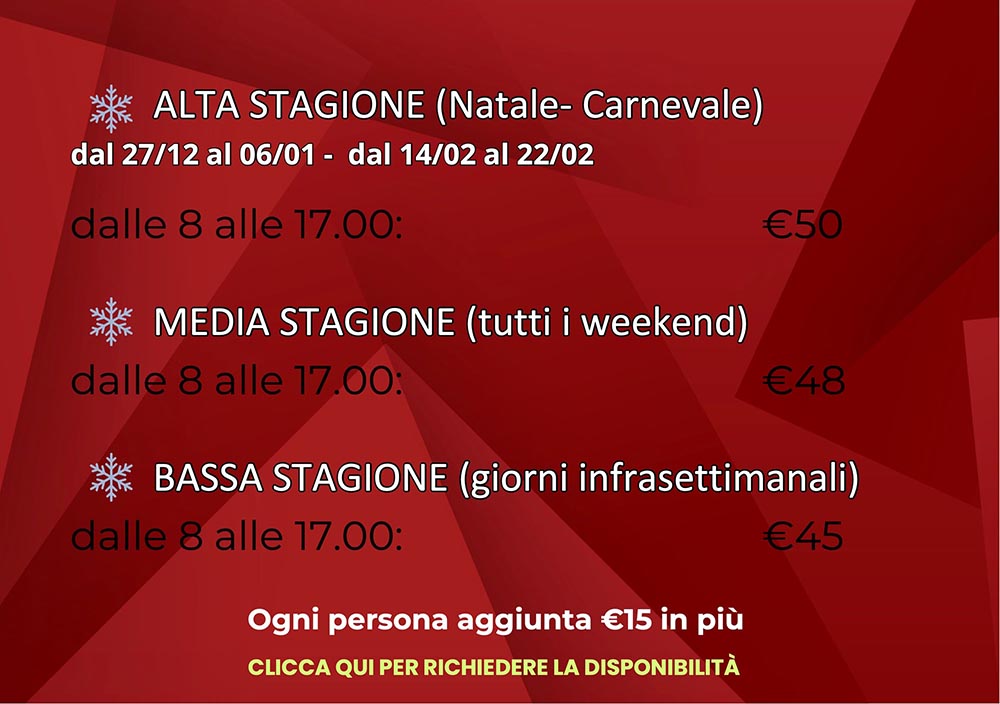Il noleggio e lo skipass NON sono compresi nel costo delle lezioni. Lo skipass è sempre necessario per qualsiasi tipologia di lezione.